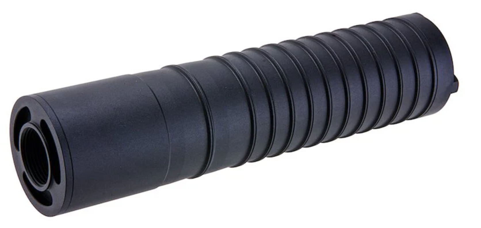 This style of mock suppressor is designed to look best with AK style airsoft rifles