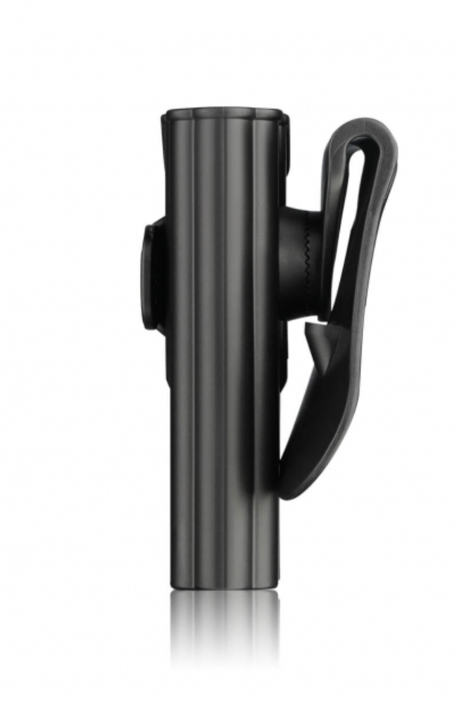 The Amomax Glock 17/22/31 holster holds your device securely. It is made of extremely durable, resistant polymer and has a quick release button retention system for the gun.