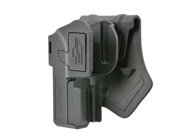 Universal fit - The holster works by locking the front lower rail and trigger guard, fitting pistols with integrated rails such as G17/G19, P320, M9, P226, Hi-Capa, and many more. However, it's important to note that it is not compatible with pistols that have specific rails like the USP.