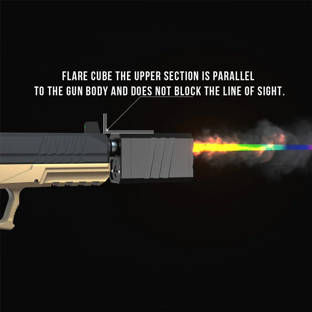 The newest addition to the E-Shooter Flare tracer unit lineup. Unlike the E-Shooter Flare M BT, which features a modular design, the Flare Cube BT boasts a distinctive cube shape that fits perfectly with pistol sizes.