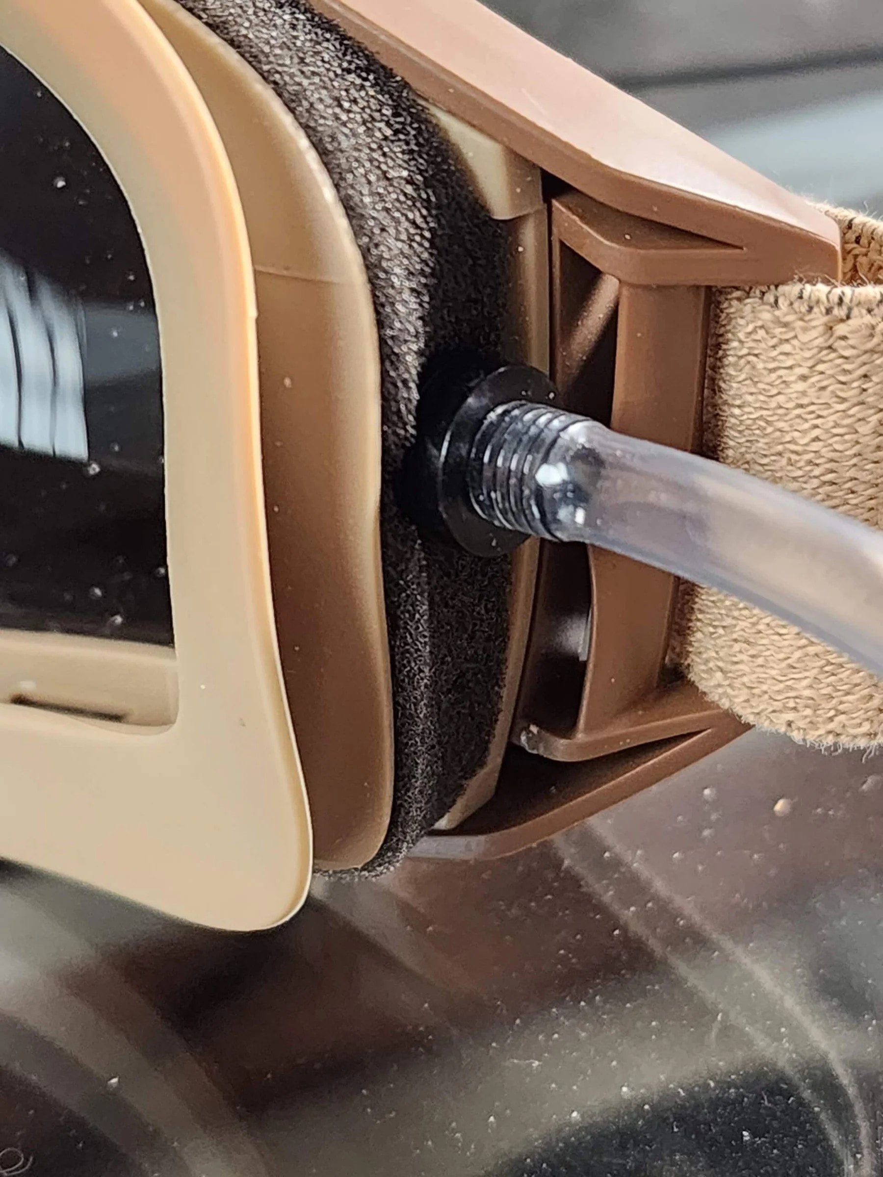 Custom quick connect goggle adapters for ExFog tubing. This adapter system is easy to install in multiple locations on your goggle allowing for flexibility of your exfog setup. The connectors use an N52 neodymium magnet; one of the strongest rare earth magnets available in it's size, so no need to worry bout the tubes coming loose in normal conditions. These adapters fit most mid size to large goggles, eliminating the need for tucking tubes under the seal. (Not applicable for low profile, sunglass style goggles)