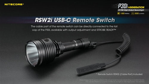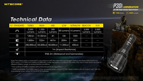 The NITECORE P30i is the ultimate long throw flashlight great for hunting or search and rescue. The P30i has a 2000 lumen beam that can reach up to 1093 yards of throw, making it one of the longest throwing flashlights. Built from durable aero grade aluminium alloy and rated IP68 waterproof, the P30i is a great all weather tool for long range lighting needs. Grab a P30i for your next long distance hunting, exploring, or search expedition.
