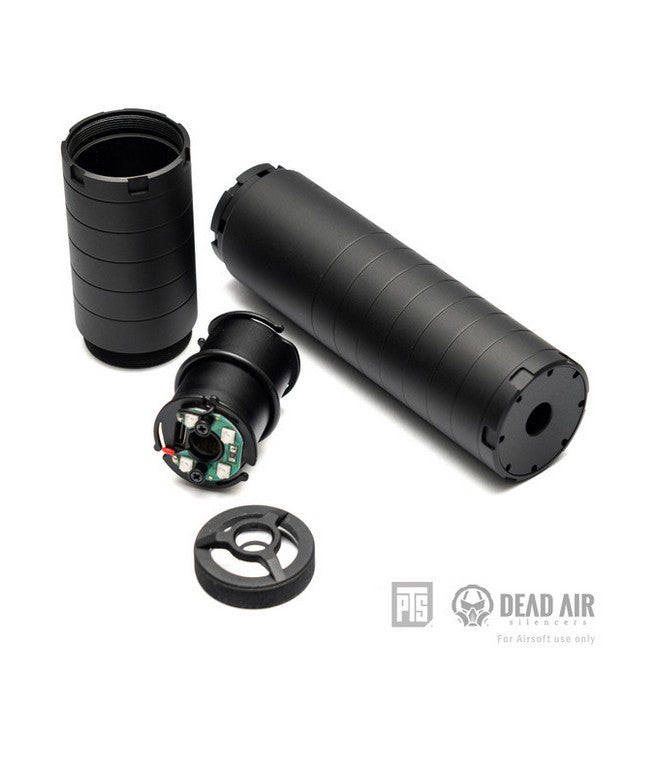 The PTS Dead Air Wolfman is a lightweight, modular, direct-thread mock suppressor or tracer designed for airsoft subgun, rifle, or pistol use. Machined from 6061 aluminum and finished with a hard anodized surface, the Wolfman combines toughness and light weight in its fully modular design.