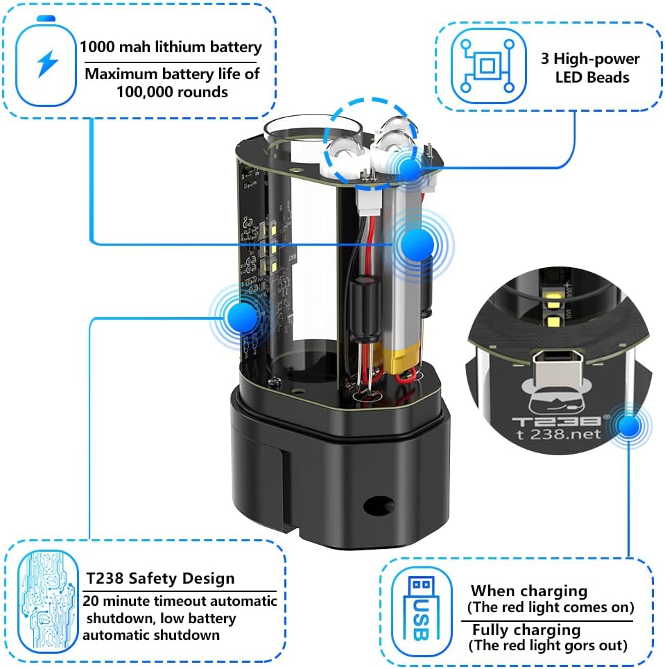 T238 airsoft tracer has 3 tracer modes, dynamic gunfire colors. It can light the special luminous bullets or ordinary bullets. Set other tracer colors through the control button.