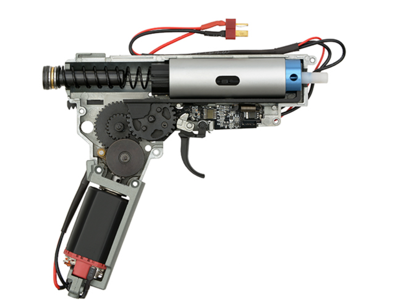 - Reinforced steel gears with an 18:1 ratio, mounted on 8mm slide bearings, along with a metal-toothed short stroke piston and a type 2 cylinder