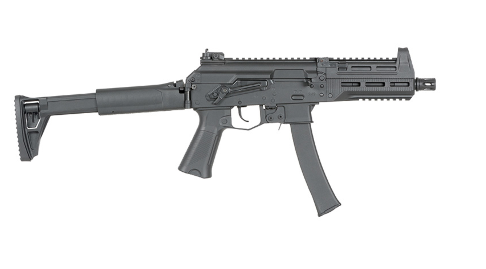 PPK-20 submachine gun using 9x19 mm cartridges. It combines the reliability and ergonomics of the modern AK-12 with a subcompact size.